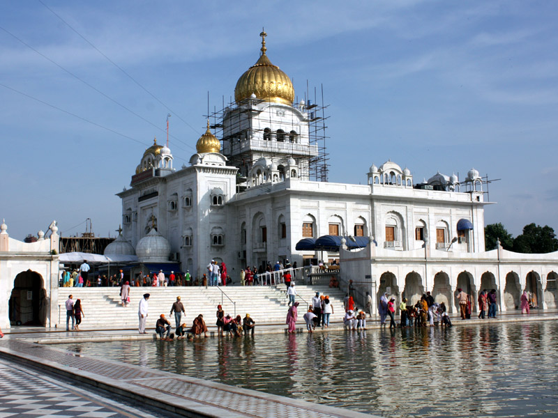 One of the prominent Sikh pilgrimage centers in Delhi is Gurudwara Bangla Sahib. The Gurudwara premises include the main prayer hall (containing the Granth Sahib, the holy book of the Sikhs), the water tank in the middle, a library, a museum, a hospital, a school and an art gallery. As similar to all gurudwaras, langar is served in the Bangla Sahib where everyone irrespective of religion, caste or creed is welcome to share a meal. Visitors to the Bangla Sahib are required to dress modestly and to keep their heads covered at all times when inside the gurudwara. Do not forget to taste the prasad (a sweet dish made of semolina).