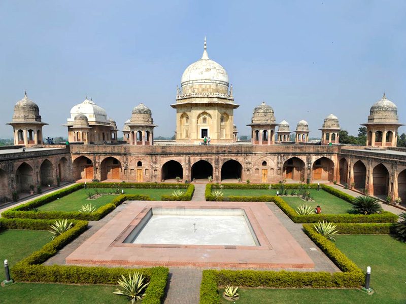 The beautiful Sheikh Chilli Tomb and attached Madarsa are associated with the Sufi Saint Abd-ur-Rahim popularly known by the name of Sheikh Chehli, believed to be the spiritual Guru of the Mughal Prince, Dara Sikoh. The tomb, overlooking the madarasa is built of buff sandstone and is crowned with a pear-shaped dome of white marble standing on a high circular drum. The cenotaph of saint occupies the centre of the chamber, while his grave is located in the lower chamber, which conjoins the madarasa through a narrow gallery. The madrassa has nine-arched openings on each side of a central courtyard that has in the centre a stone masonry tank.